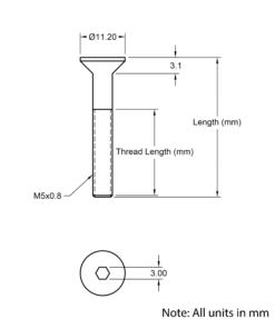 M5x12mm Countersunk Bolt (ISO 10642, A2 Stainless Steel)