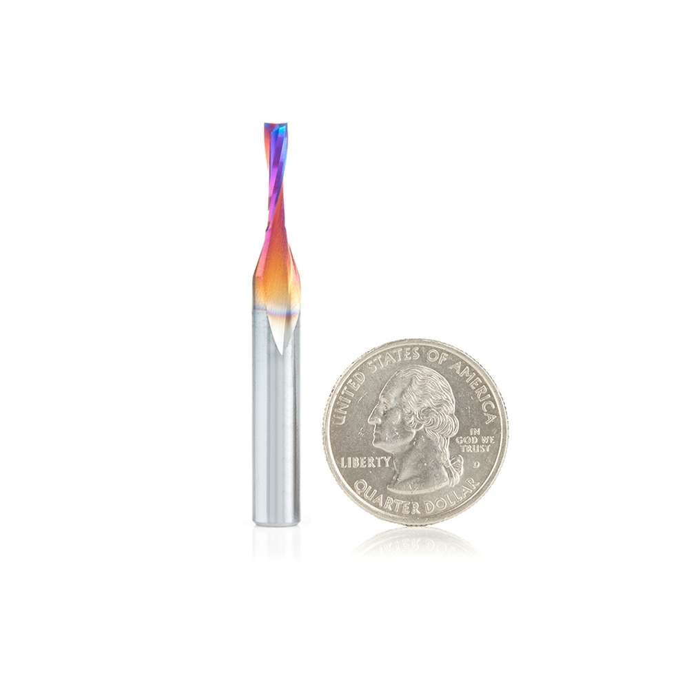 Spektra-coated router bits from Amana Tool are designed for exceptional cut quality on your cnc machine. The nACo micro-thin coating enhances edge sharpness and lubricity, ensuring smooth and precise cuts. Additionally, the Spektra coating reduces heat buildup and prevents oxidation, resulting in superior performance and extended tool life.