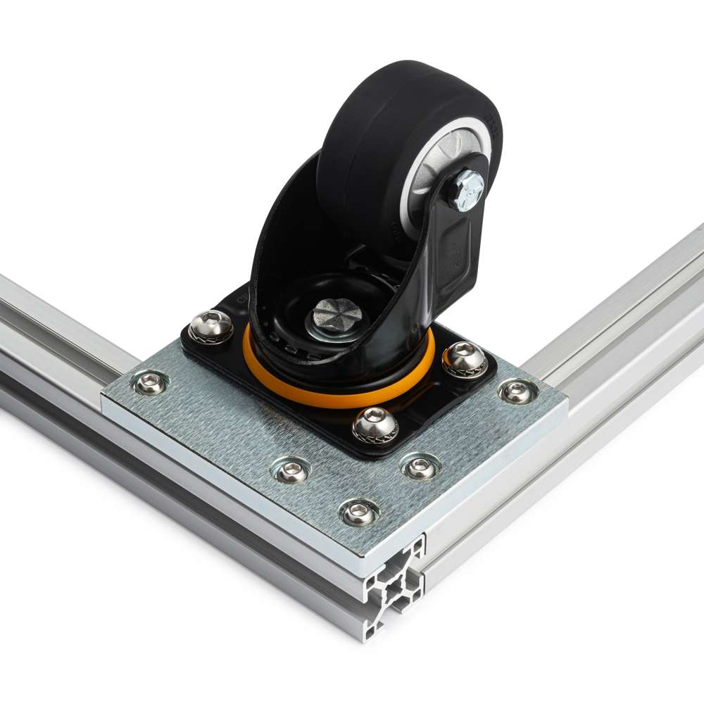 - Plate Mounting: Designed for use with corner castor plates for secure attachment to aluminium extrusion frames.