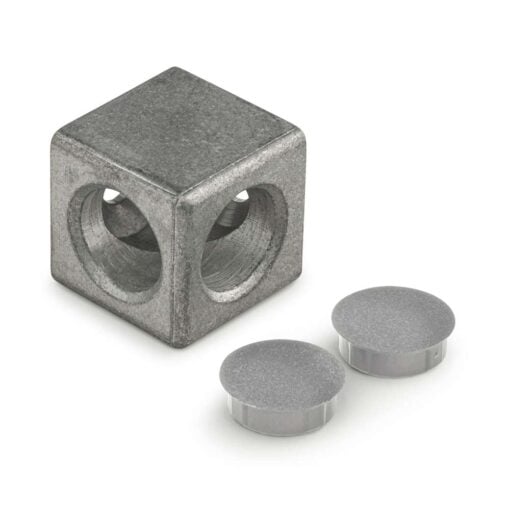 Cube Corner Brackets are designed for use with 20 Series T-Slot Aluminium Extrusions to create strong and efficient 90-degree connections. Their high shear strength and fast assembly make them ideal for industrial frameworks, modular workstations, and enclosures. Unlike other corner brackets, they leave the extrusion slots completely clear, allowing for unrestricted mounting of panels, accessories, or additional structural components. The included cover caps provide a polished finish and help maintain a clean assembly.