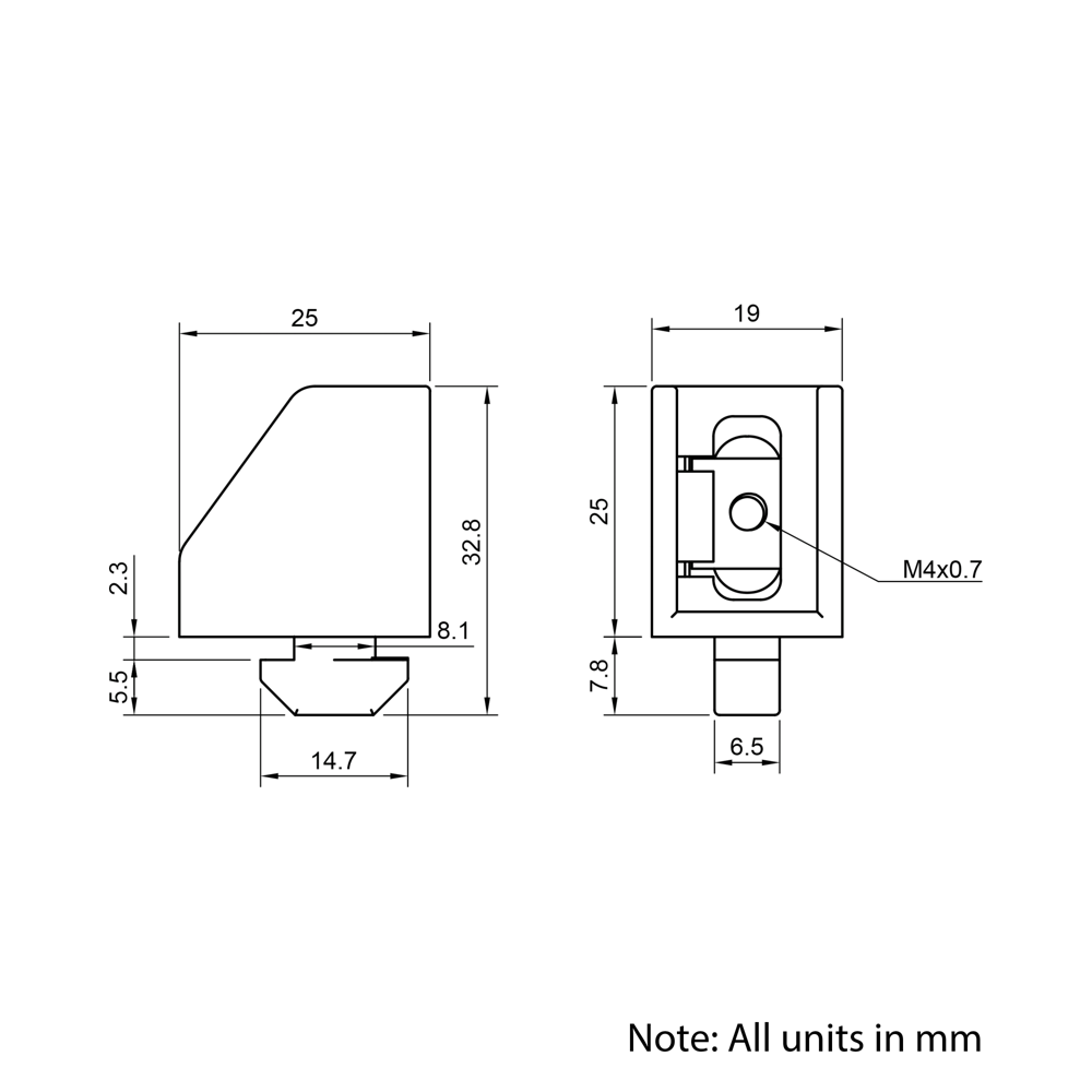 30 Series Panel Brackets provide a simple and effective solution for mounting infill panels to aluminium extrusion frames after assembly. Designed to twist-lock into the slot of extrusion, these brackets feature an integrated nut, allowing panels to be easily secured. Ideal for applications where panels need to be installed, removed, or replaced without disassembling the frame, they offer a strong, discreet mounting method with minimal effort.