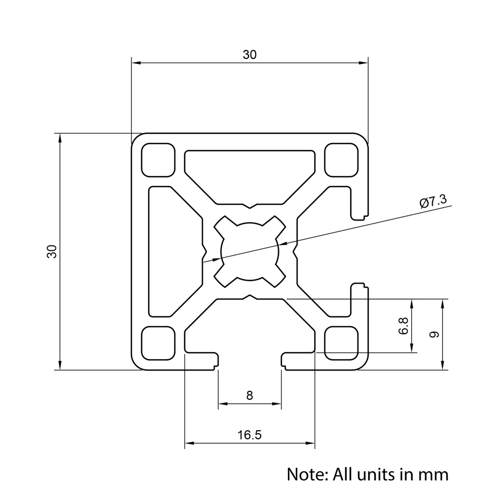 2 Slot Corner 30x30mm 30 Series T-Slot Aluminium Extrusion Profile is the perfect solution for your next project. Designed with versatility and durability in mind, our high-quality T-Slot compatible aluminium profile is ideal for a wide range of applications. From framing systems to machine guarding, workstations to display stands, as well as CNC machines and 3D printers, this reliable and easy-to-assemble extrusion provides a strong foundation for any build. Use the potential of our 30×30 2 Slot Corner aluminium extrusion for your industrial applications, products and automated systems.