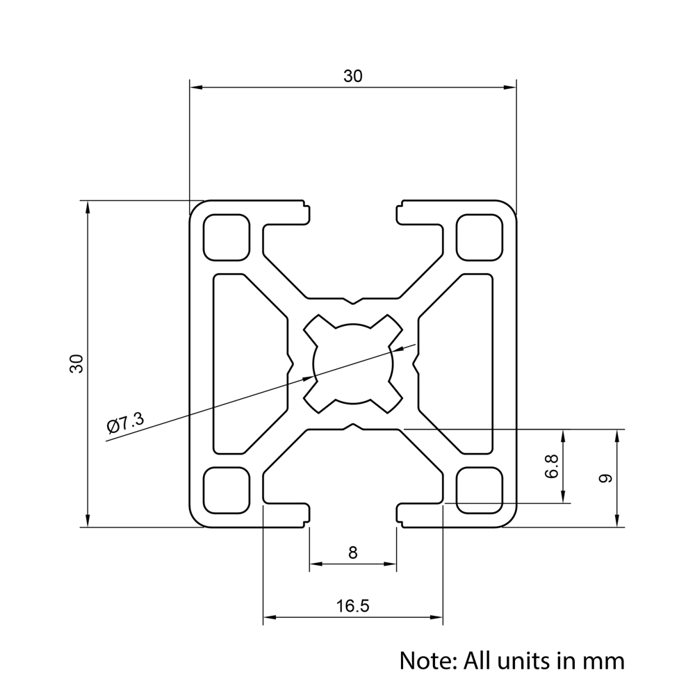 2 Slot 30x30mm 30 Series T-Slot Aluminium Extrusion Profile is the perfect solution for your next project. Designed with versatility and durability in mind, our high-quality T-Slot compatible aluminium profile is ideal for a wide range of applications. From framing systems to machine guarding, workstations to display stands, as well as CNC machines and 3D printers, this reliable and easy-to-assemble extrusion provides a strong foundation for any build. Use the potential of our 30×30 2 Slot aluminium extrusion for your industrial applications, products and automated systems.