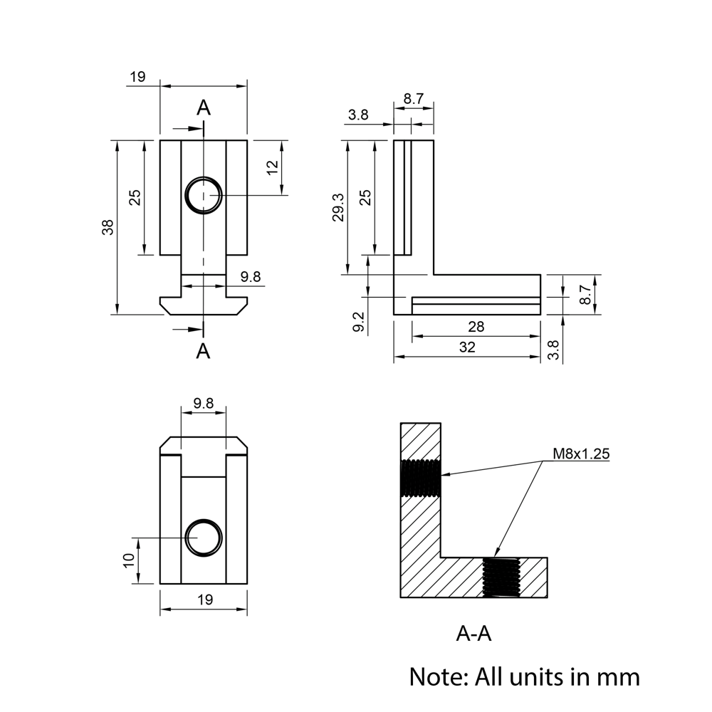 Butt Inner Link Connectors are specifically designed for use with our 40 & 45 Series T-Slot Aluminium Extrusion. They efficiently connect 40 & 45 Series extrusions to form a 90 degree butt joint. For enhanced stability and a more robust connection, it is recommended to increase the number of connectors used, for example use 2 to connect two 40×80 aluminium extrusions.