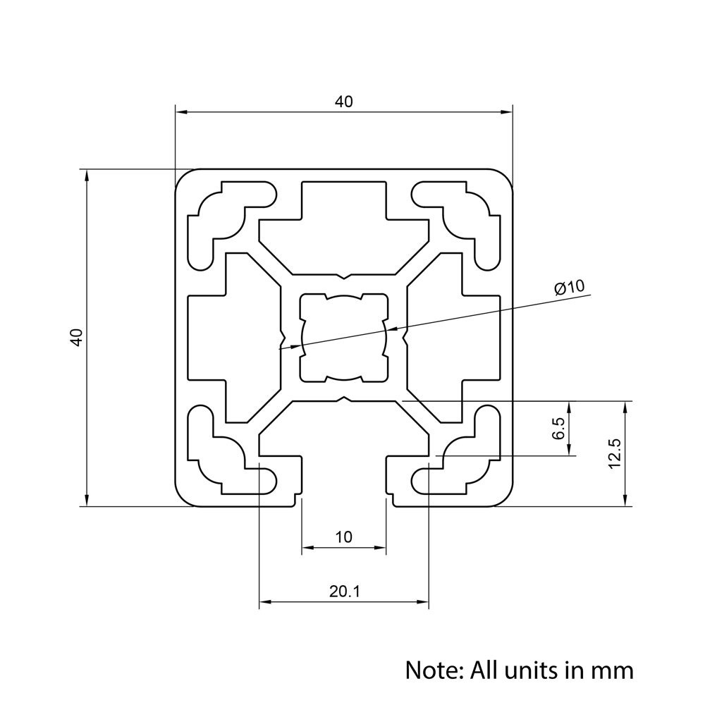 1 Slot 40x40mm 40 Series T-Slot Aluminium Extrusion Profile is the perfect solution for your next project. Designed with versatility and durability in mind, our high-quality T-Slot compatible aluminium profile is ideal for a wide range of applications. From framing systems to machine guarding, workstations to display stands, as well as CNC machines and 3D printers, this reliable and easy-to-assemble extrusion provides a strong foundation for any build. Use the potential of our 40×40 1 Slot aluminium extrusion for your industrial applications, products and automated systems.