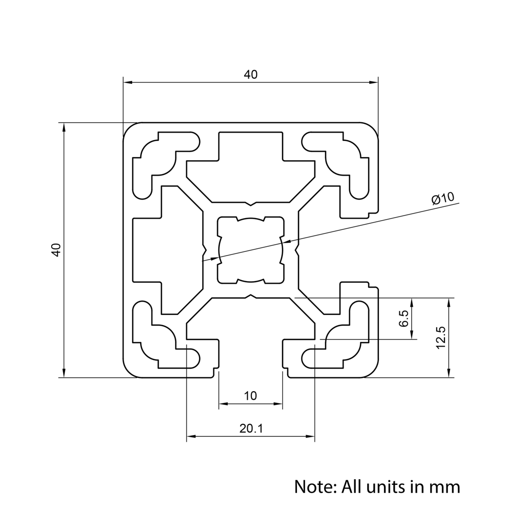 2 Slot Corner 40x40mm 40 Series T-Slot Aluminium Extrusion Profile is the perfect solution for your next project. Designed with versatility and durability in mind, our high-quality T-Slot compatible aluminium profile is ideal for a wide range of applications. From framing systems to machine guarding, workstations to display stands, as well as CNC machines and 3D printers, this reliable and easy-to-assemble extrusion provides a strong foundation for any build. Use the potential of our 40×40 2 Slot Corner aluminium extrusion for your industrial applications, products and automated systems.