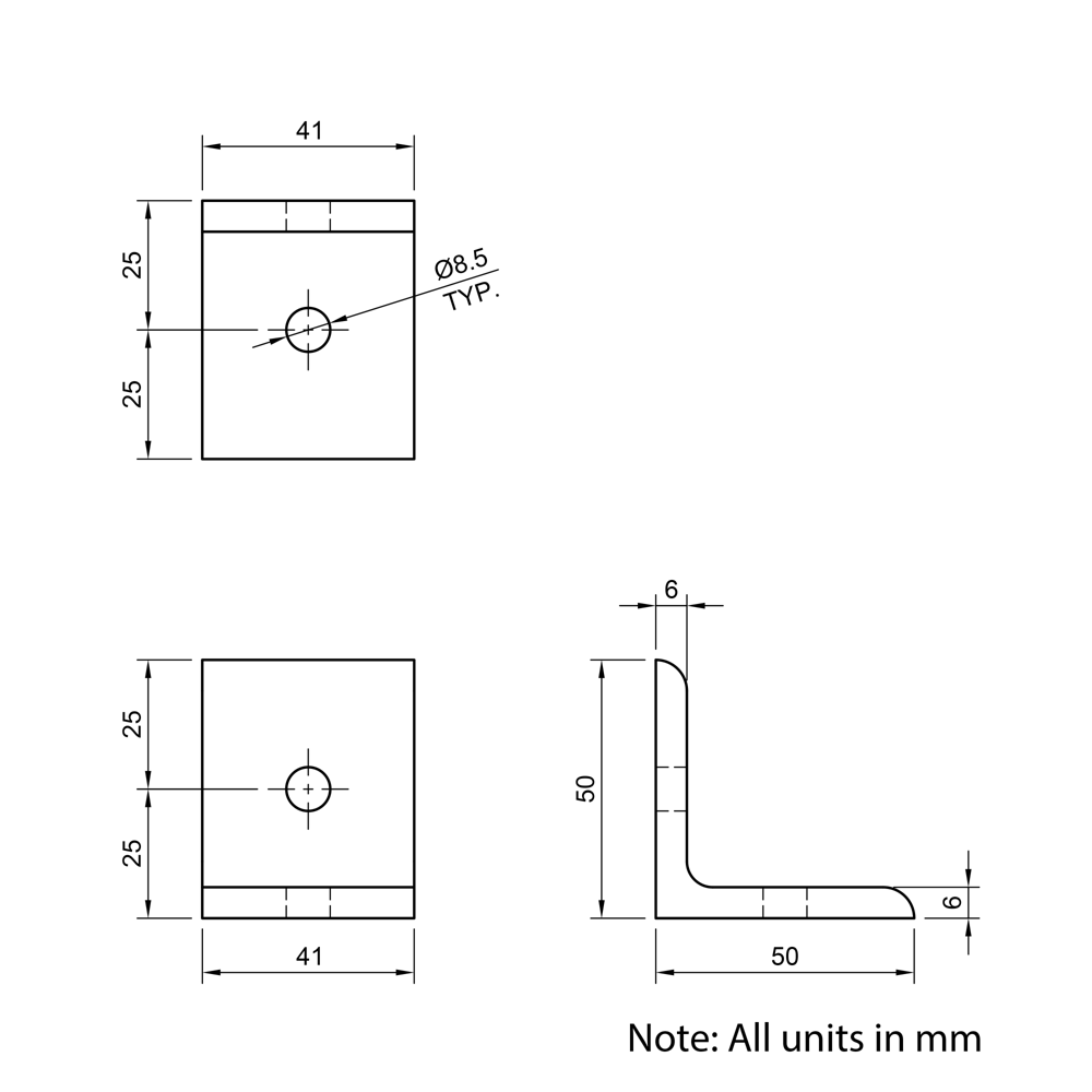 Universal Corner Brackets are designed for use with 45 Series T-Slot Aluminium Extrusions to create strong and stable 90-degree connections. These brackets offer excellent shear and moment resistance, making them suitable for high-strength structural frameworks, machine enclosures, and modular assemblies. Their adaptability ensures a reliable connection in various configurations while maintaining ease of assembly and long-term durability.