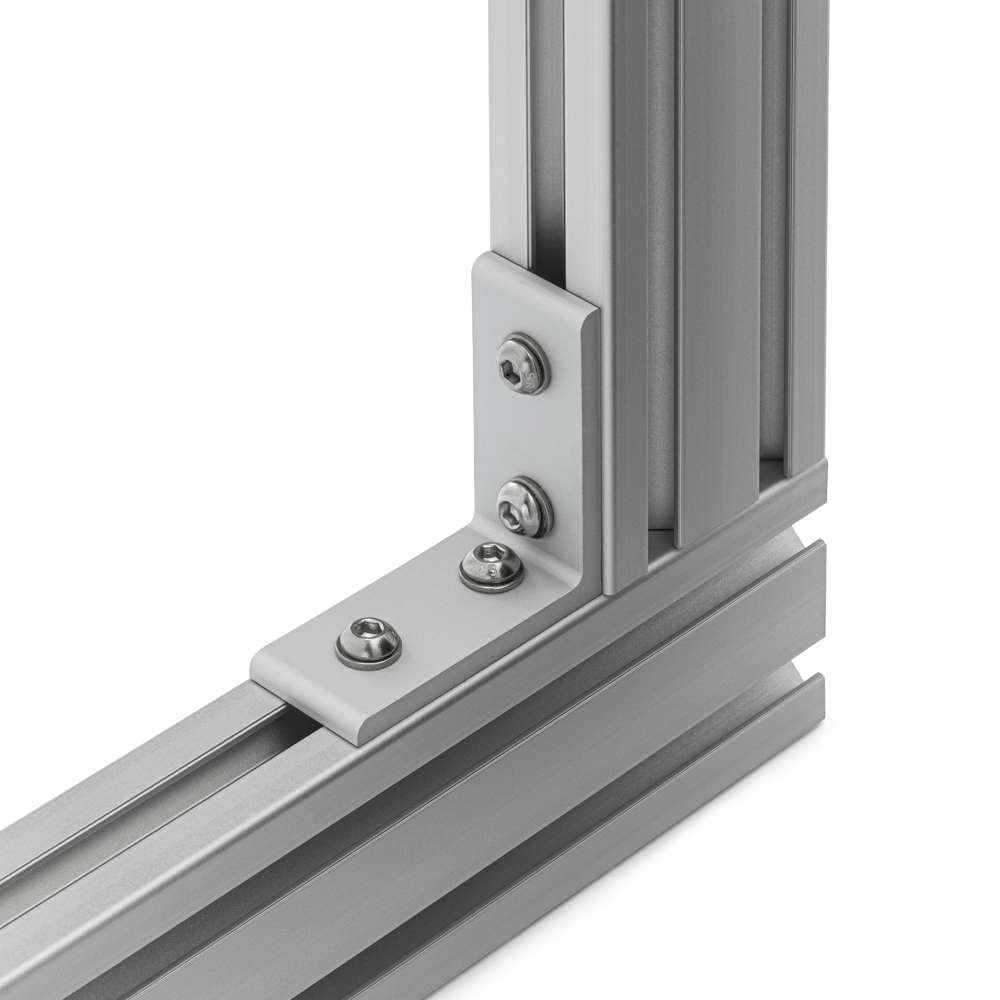 45×90 45 Series Universal Corner Brackets provide a strong and flexible solution for creating secure 90-degree joints in aluminium extrusion assemblies. Designed for high shear and moment resistance, these brackets offer high structural integrity of frameworks without requiring any machining. Their universal design allows them to be mounted either parallel or perpendicular to the extrusion slot, and they do not have to be used solely for extrusion-to-extrusion connections. This versatility makes them ideal for a wide range of applications, from machine enclosures to industrial workstations, ensuring a reliable and durable connection.