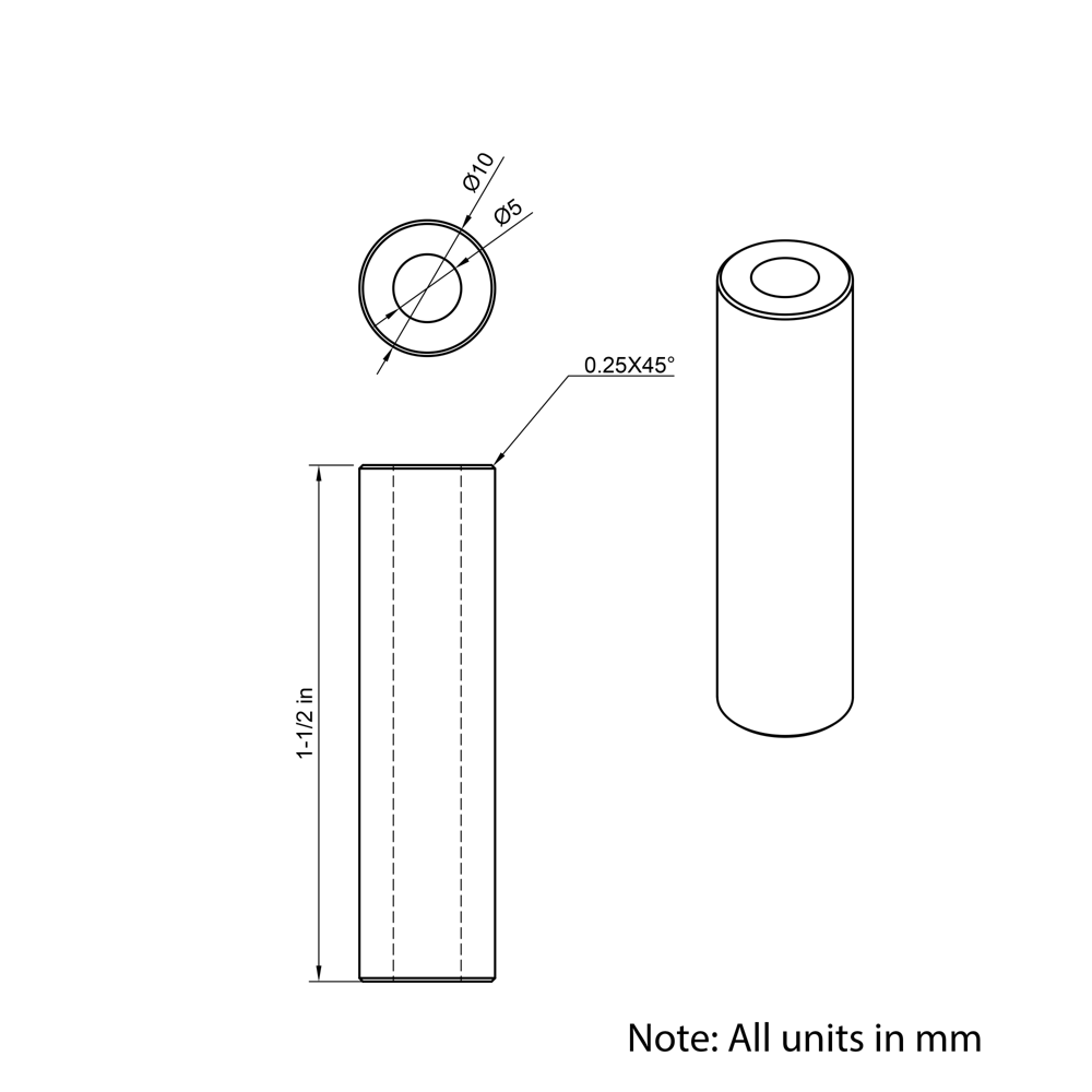 5x10mmx1-1/2″ Aluminium Spacers are precision-engineered components designed to the same DIN988 standard dimensions as our precision shims. Perfect for use in aluminium extrusion systems, these spacers provide reliable separation and support for mounting stepper motors, spacing pulleys, wheels, and other components. Made from lightweight, corrosion-resistant aluminium, they ensure optimal stability and accurate alignment in custom assemblies.