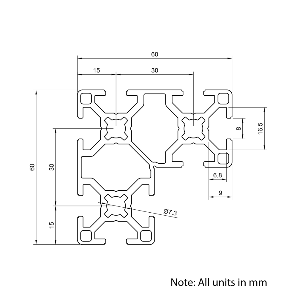 60x60mm (L-Beam) 30 Series T-Slot Aluminium Extrusion Profile is the perfect solution for your next project. Designed with versatility and durability in mind, our high-quality T-Slot compatible aluminium profile is ideal for a wide range of applications. From framing systems to machine guarding, workstations to display stands, as well as CNC machines and 3D printers, this reliable and easy-to-assemble extrusion provides a strong foundation for any build. Use the potential of our 60×60 (L-Beam) Slot aluminium extrusion for your industrial applications, products and automated systems.