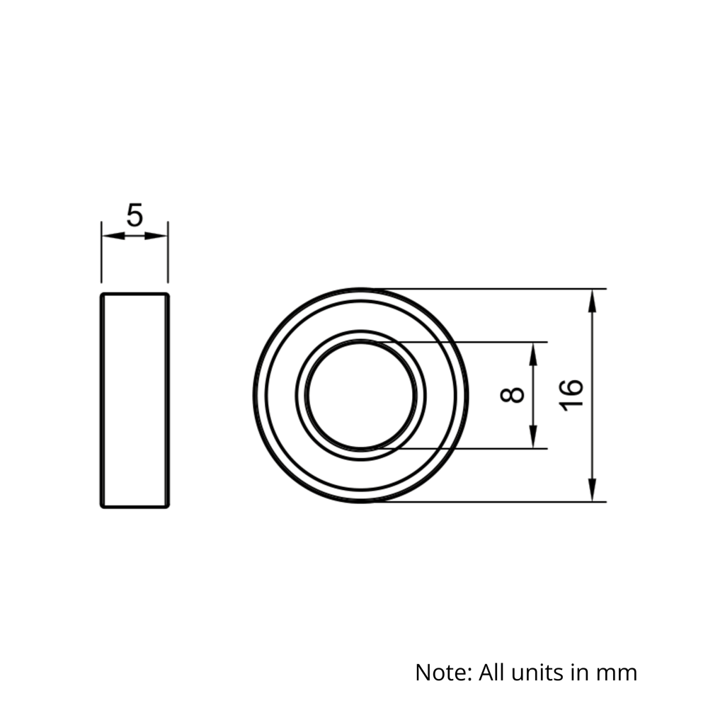 8x16x5mm Compact Radial Bearing (688-2RS) is designed for smooth rotational motion in compact spaces, offering reliable performance where precision and environmental sealing are critical. This deep-groove ball bearing features a slim profile for space-constrained assemblies and includes dual rubber seals (2RS) to protect against dust and debris. Ideal for applications requiring low-friction rotation, compact size, and long-term durability.