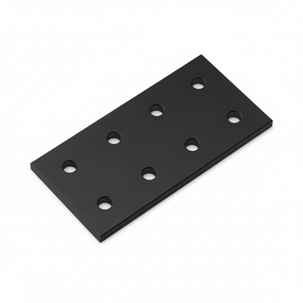 Aluminium Black Double Slot 20 Series 8 Hole Plate Connectors provide a strong, stable, and aesthetically refined solution for creating secure end-to-end, 90-degree, and T joints in aluminium extrusion assemblies. Designed for high shear, moment, and torsional resistance depending on configuration, these connectors offer high structural integrity of frameworks without requiring any machining. These brackets are ideal for machine enclosures, industrial workstations, and other demanding structural applications.