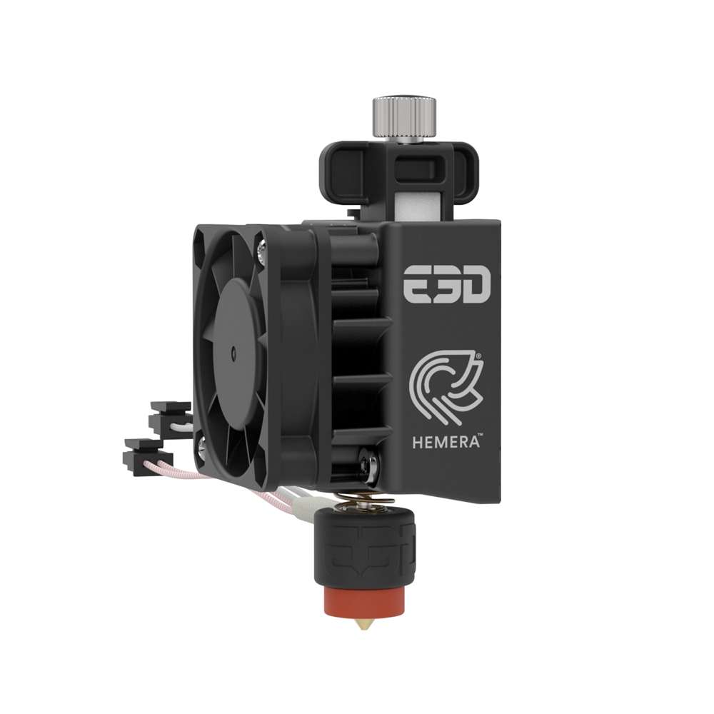 Upgrade your existing E3D Hemera with the power and convenience of the Revo ecosystem. The 12V 1.75mm Starter Kit E3D Hemera Revo Upgrade Kit brings RapidChange Revo technology to your setup, allowing for quick, tool-free nozzle swaps at room temperature—no wrenches, no hot tightening, just effortless changes. At the core of this upgrade is the Revo HeaterCore, a compact, all-in-one unit integrating the heater, thermistor, and block for faster heat-up times up to 300°C. Built with a PTC design, it reduces power as it heats, enhancing safety and preventing thermal runaway. Designed specifically for Hemera users, this kit provides everything you need to seamlessly transition to Revo Nozzles, giving you greater flexibility, faster nozzle swaps, and improved thermal performance.