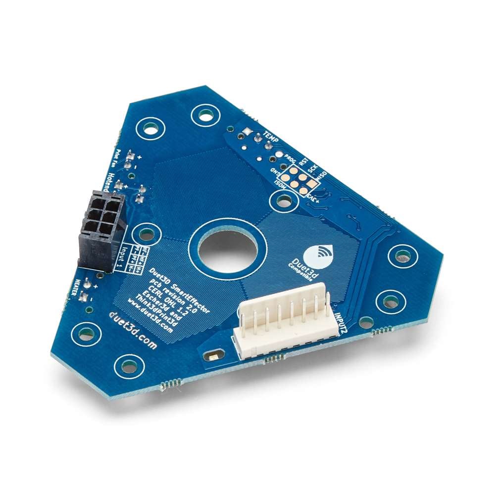 Duet Delta Smart Effector is a specialised effector board designed for Delta 3D printers. It allows the hotend itself to be used as a Z Probe, simplifying calibration and improving accuracy.