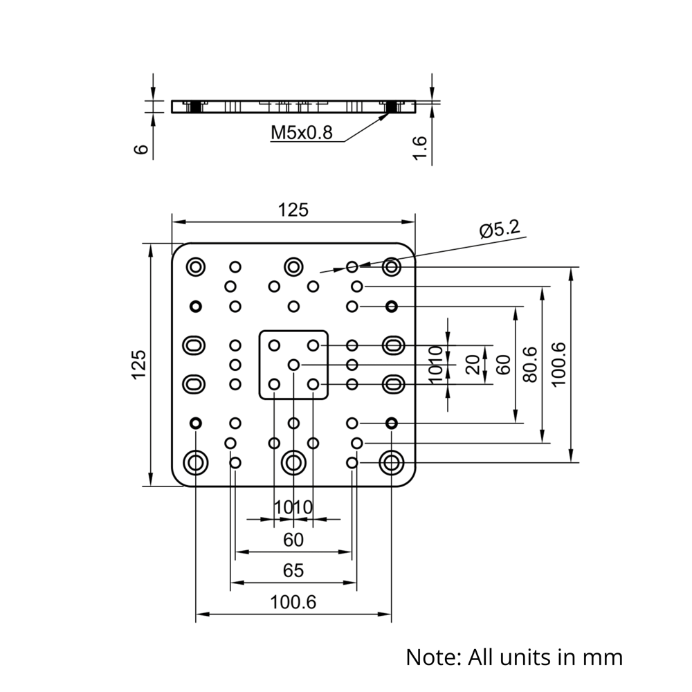 - Mounting Flexibility: Features a range of mounting holes to support motors, brackets, and custom components.