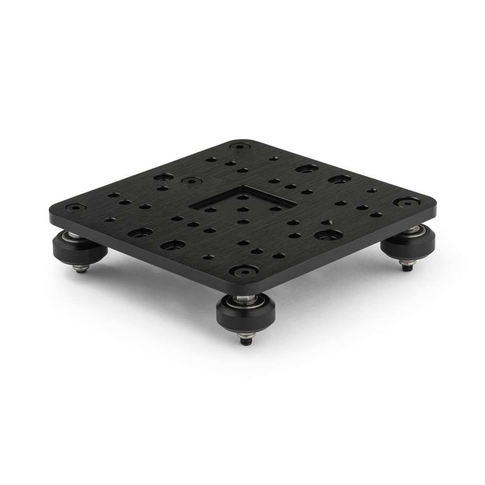 Extra Large C-Beam Gantry Plate (125x125mm) (77.5×77.5mm) is a compact and durable platform for building smooth, precise linear motion systems using C-Beam Aluminium Extrusions (40x80mm). Made from high-strength aluminium and finished with a black anodised coating, this plate accepts V-Slot Wheels and rides along the external slots of the C-Beam profile.