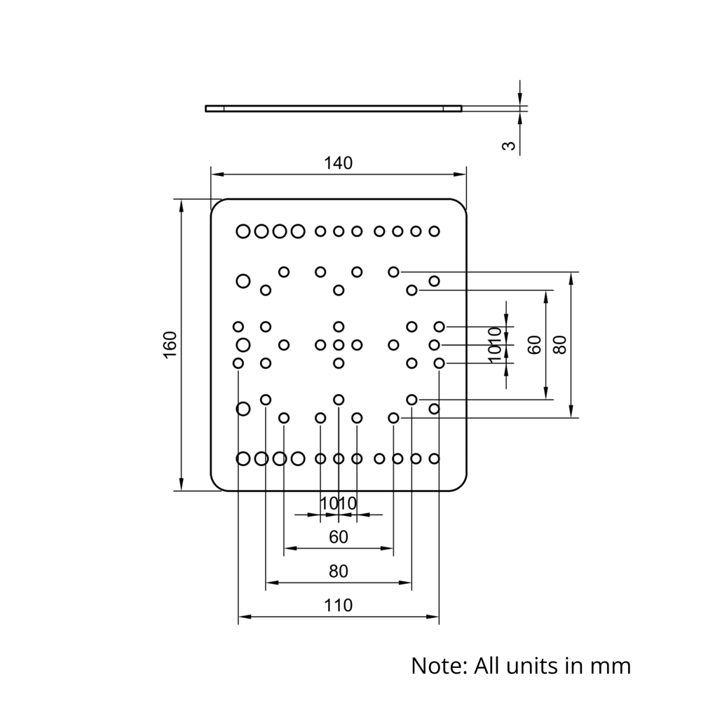 - Mounting Flexibility: Features a range of mounting holes to support motors, brackets, and custom components.