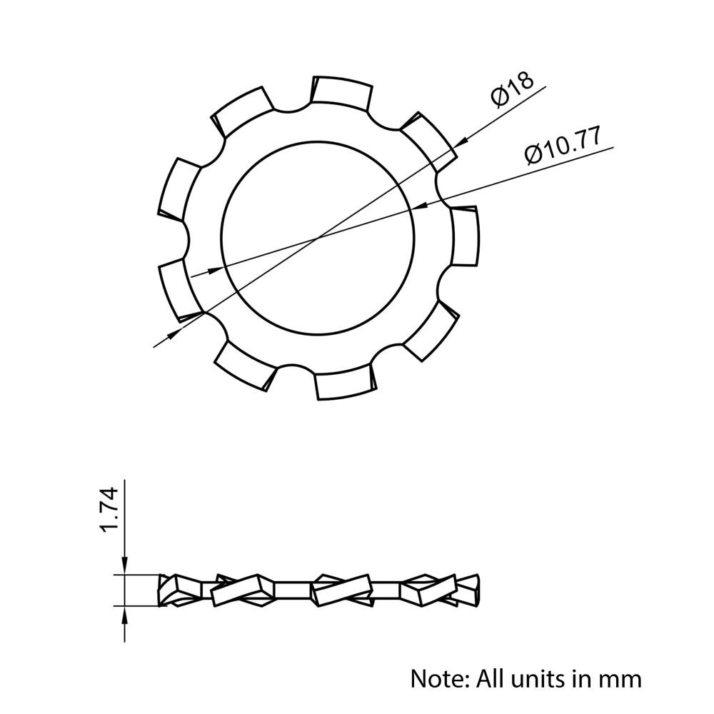 M10 A2 Stainless Steel External Toothed Lock Washers (DIN 6798A) are designed to improve fastening security by providing enhanced resistance to loosening caused by vibration and movement. Made from high-quality A2 stainless steel, these washers offer exceptional corrosion resistance and durability. The external toothed design bites into the mating surfaces, increasing friction and mechanical grip, making them ideal for use in dynamic or high-vibration assemblies such as those using aluminium extrusions.