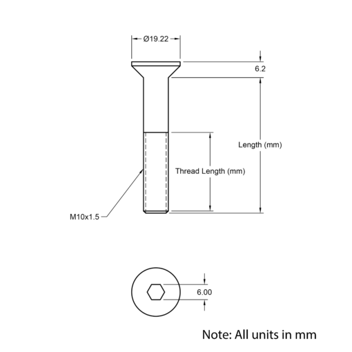 M10x16mm Countersunk Bolts are designed to provide a flush, clean finish while ensuring strong and reliable fastening. Crafted from high-quality A2 stainless steel, these bolts offer excellent corrosion resistance and durability. The countersunk design allows the bolt head to sit flush with or below the surface, making them ideal for applications where a smooth and unobtrusive appearance is desired. Perfectly suited for use with our aluminium extrusion systems, these bolts enhance both the functionality and aesthetics of your projects.