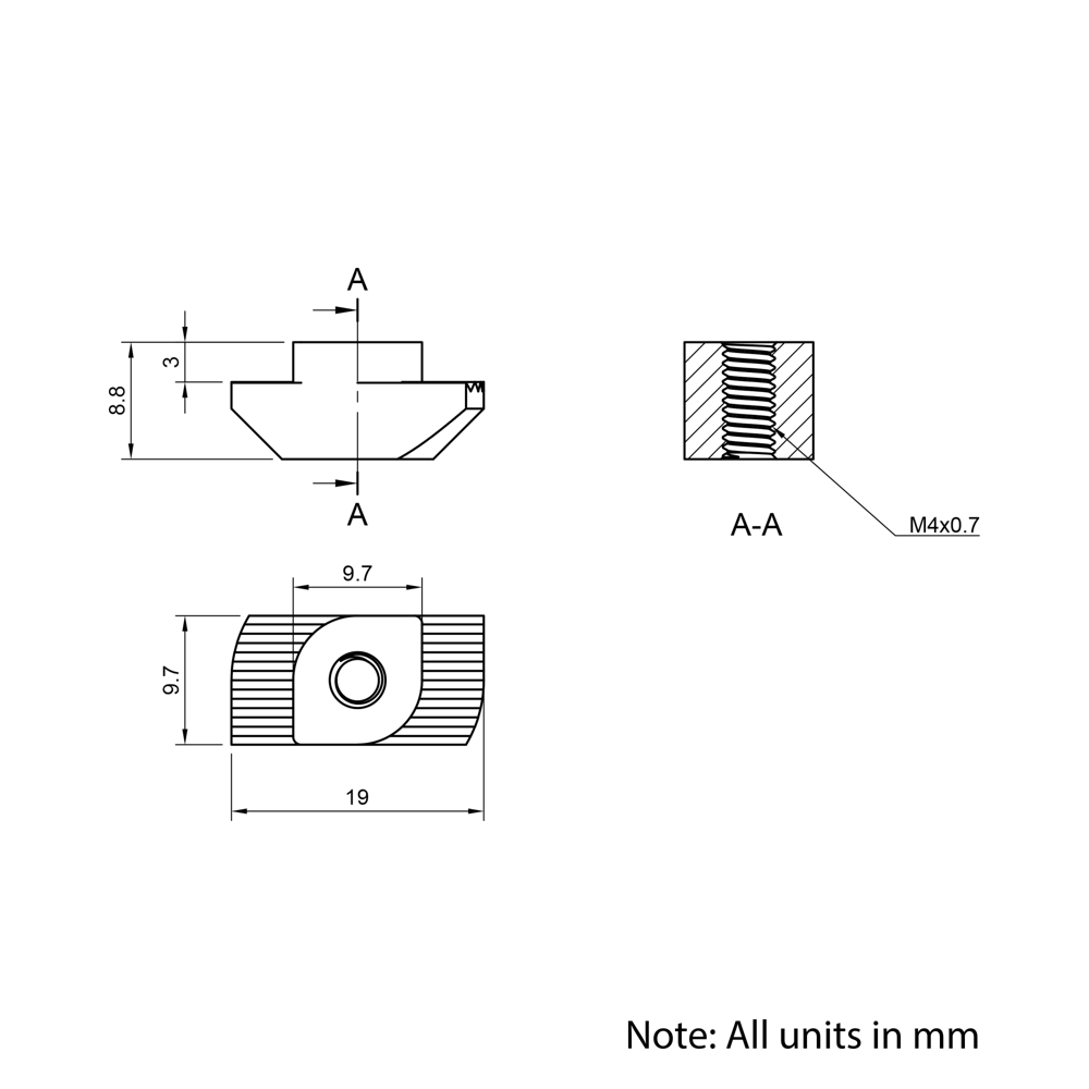 Drop In Nuts are specifically designed to complement our aluminium extrusion systems, providing easy to use and medium-strength fastening for a wide range of structures and assemblies. Ideal for both professional engineers and DIY enthusiasts, these nuts offer a practical solution for constructing adjustable and reliable structures. Their ease of use and compatibility make them a practical choice for any project requiring efficient and secure assembly.