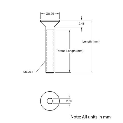 M4x16mm Countersunk Bolts are designed to provide a flush, clean finish while ensuring strong and reliable fastening. Crafted from high-quality A2 stainless steel, these bolts offer excellent corrosion resistance and durability. The countersunk design allows the bolt head to sit flush with or below the surface, making them ideal for applications where a smooth and unobtrusive appearance is desired. Perfectly suited for use with our aluminium extrusion systems, these bolts enhance both the functionality and aesthetics of your projects.