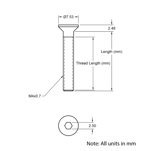 M4x45mm Countersunk Bolts are designed to provide a flush, clean finish while ensuring strong and reliable fastening. Crafted from high-quality A2 stainless steel, these bolts offer excellent corrosion resistance and durability. The countersunk design allows the bolt head to sit flush with or below the surface, making them ideal for applications where a smooth and unobtrusive appearance is desired. Perfectly suited for use with our aluminium extrusion systems, these bolts enhance both the functionality and aesthetics of your projects.