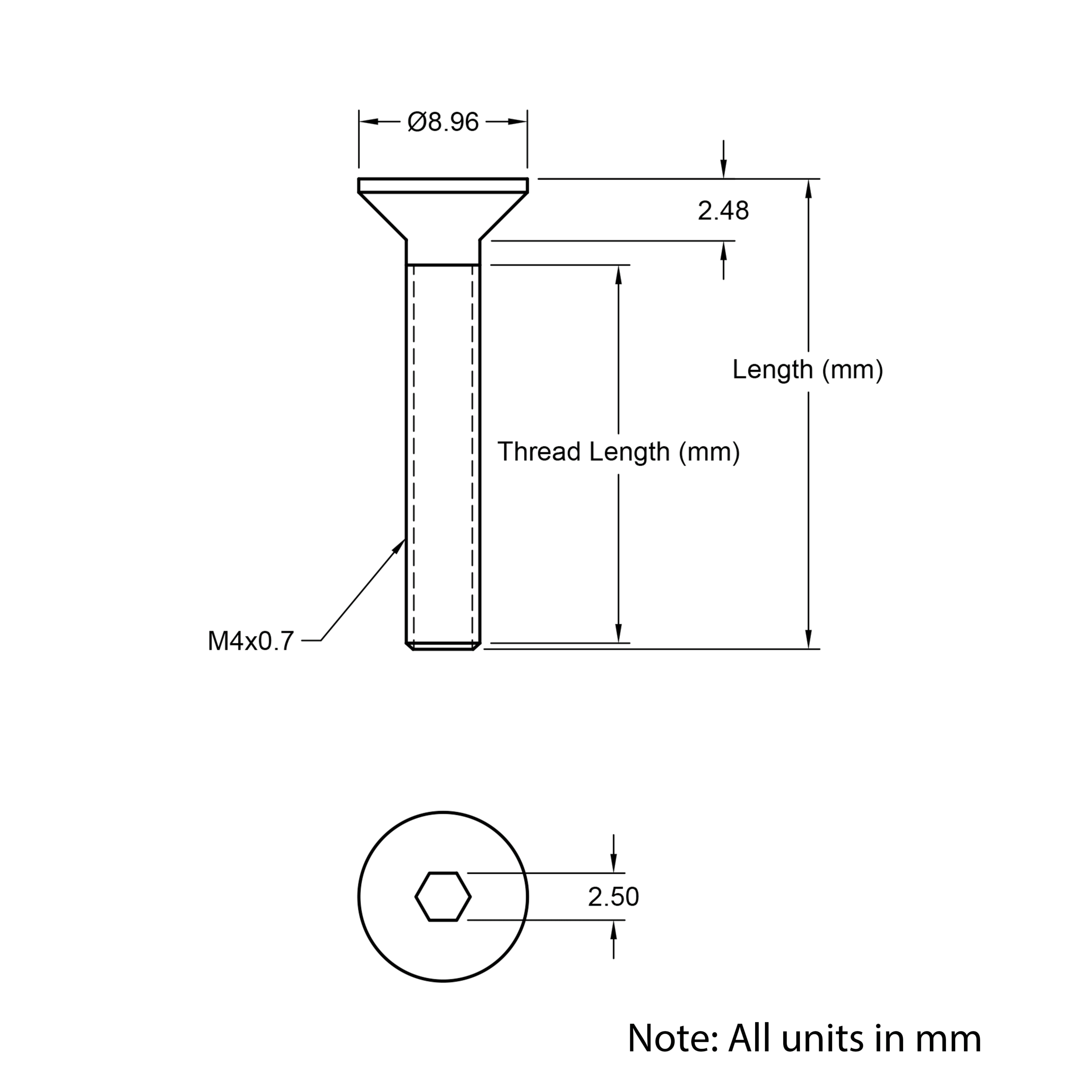 M4x6mm Countersunk Bolts are designed to provide a flush, clean finish while ensuring strong and reliable fastening. Crafted from high-quality A2 stainless steel, these bolts offer excellent corrosion resistance and durability. The countersunk design allows the bolt head to sit flush with or below the surface, making them ideal for applications where a smooth and unobtrusive appearance is desired. Perfectly suited for use with our aluminium extrusion systems, these bolts enhance both the functionality and aesthetics of your projects.