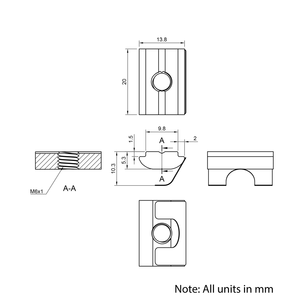 Spring Leaf Loaded Nuts are specifically designed to complement our aluminium extrusion systems, providing easy to use and medium-strength fastening for a wide range of structures and assemblies. Ideal for both professional engineers and DIY enthusiasts, these nuts offer a practical solution for constructing adjustable and reliable structures. Their steel leaf mechanism ensures the nut stays in place during installation, particularly on vertical planes, making them a practical choice for any project requiring efficient and secure assembly.