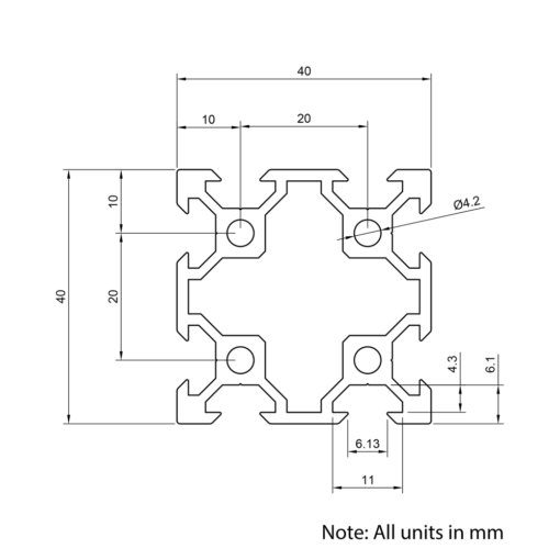 | Seconds – Black 40x40mm 20 Series T/V-Slot Aluminium Extrusion Profile – 1000mm | 1 |