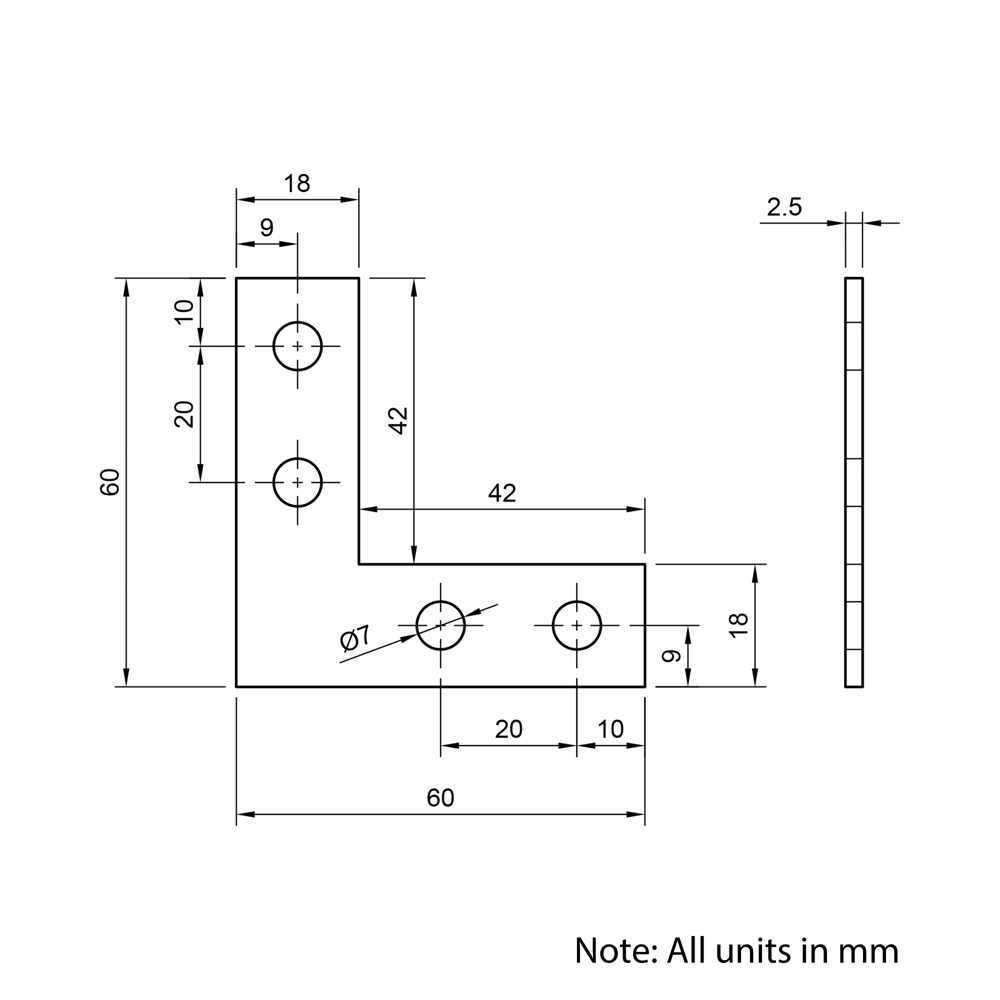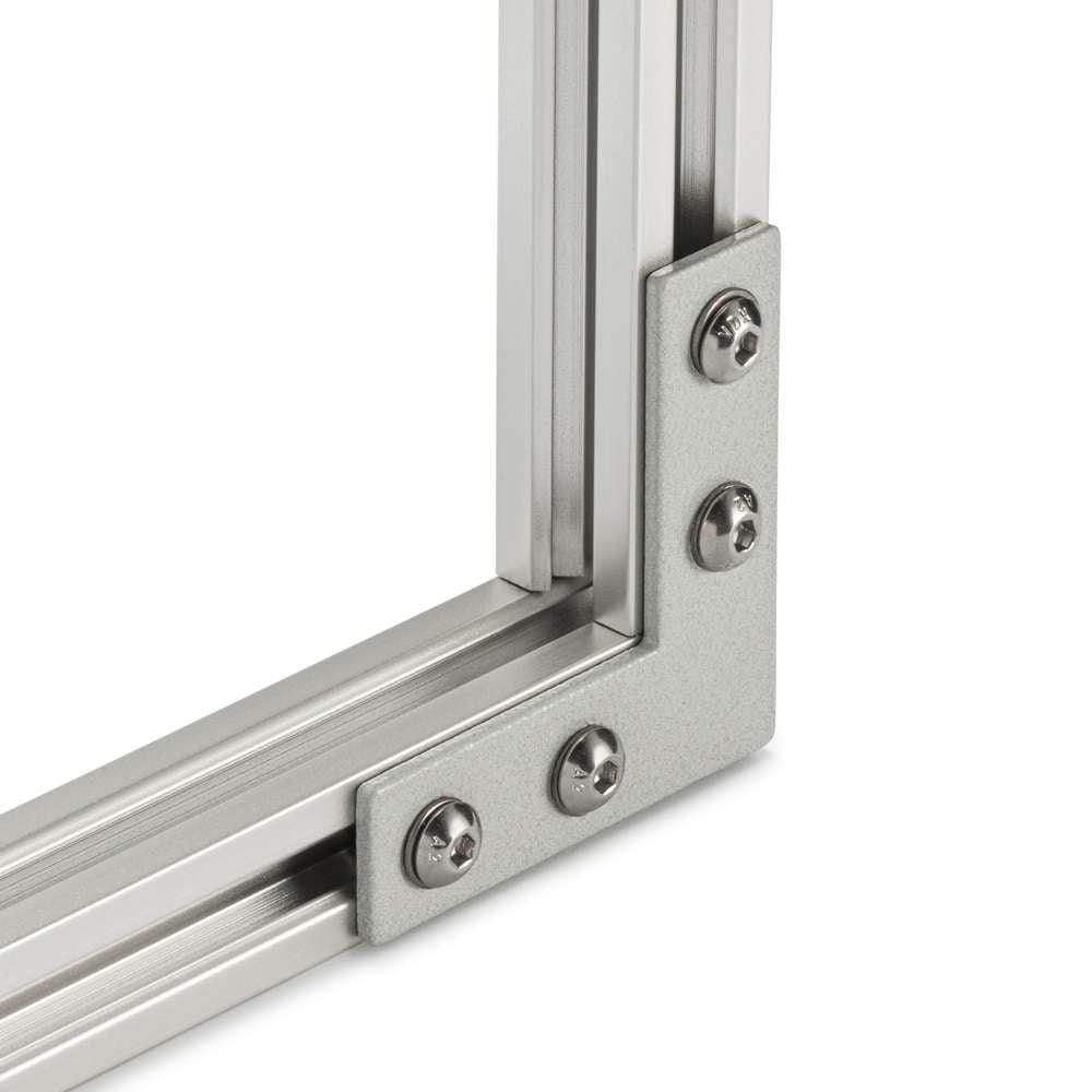 Plate Connectors are designed for use with 20 Series T-Slot Aluminium Extrusions to create strong and stable 90-degree connections. These plates offer excellent shear, moment, and torsional resistance, making them suitable for high-strength structural frameworks, machine enclosures, and modular assemblies. Their adaptability ensures a reliable connection in various configurations while maintaining ease of assembly and long-term durability. Unlike other corner brackets, they leave the internal extrusion slots completely clear, allowing for unrestricted mounting of panels, accessories, or additional structural components.