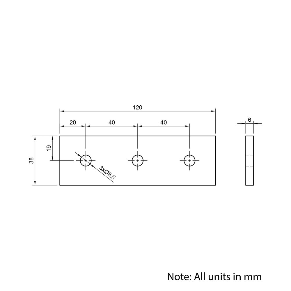 Aluminium Single Slot 40 Series 3 Hole Plate Connectors provide a strong, stable, and aesthetically refined solution for creating secure end-to-end, 90-degree, and T joints in aluminium extrusion assemblies. Designed for high shear, moment, and torsional resistance depending on configuration, these connectors offer high structural integrity of frameworks without requiring any machining. These brackets are ideal for machine enclosures, industrial workstations, and other demanding structural applications.