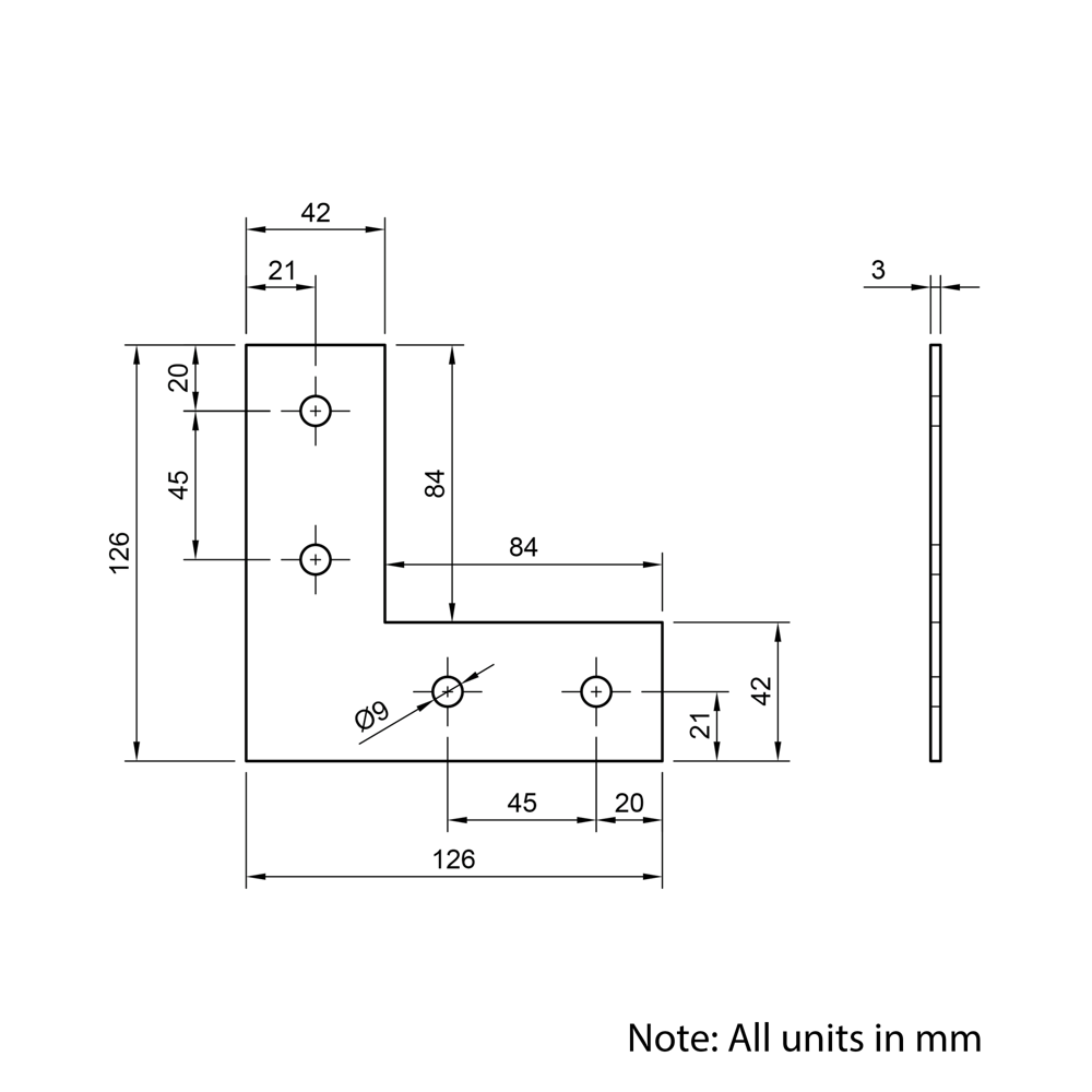 Plate Connectors are designed for use with 45 Series T-Slot Aluminium Extrusions to create strong and stable 90-degree connections. These plates offer excellent shear, moment, and torsional resistance, making them suitable for high-strength structural frameworks, machine enclosures, and modular assemblies. Their adaptability ensures a reliable connection in various configurations while maintaining ease of assembly and long-term durability. Unlike other corner brackets, they leave the internal extrusion slots completely clear, allowing for unrestricted mounting of panels, accessories, or additional structural components.