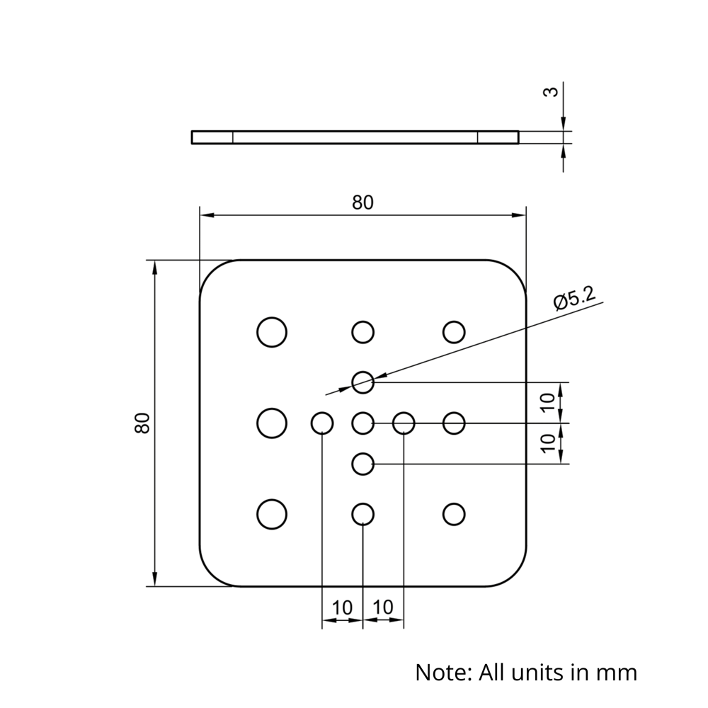 - Mounting Flexibility: Features a range of mounting holes to support motors, brackets, and custom components.