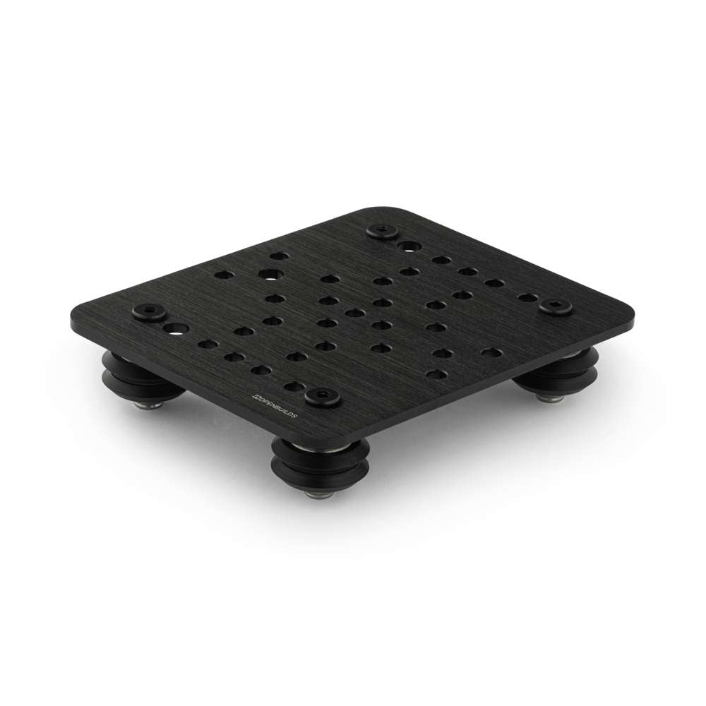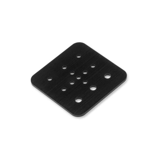 Small MotionRail Gantry Plate (80x80mm) is a versatile and durable platform for building smooth, precise linear motion systems using MotionRail Extrusions. Made from high-strength aluminium and finished with a black anodised coating, this plate accepts MotionRail Wheels and provides a stable base that glides effortlessly along the external ‘V’ of the MotionRail extrusion profile. Holes on one side are designed to accept eccentric spacers, enabling preloading of the wheels for tight, wobble-free tracking.